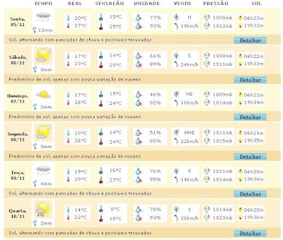 Previsão do tempo para fim de semana 06 e 07/11, e próxima semana