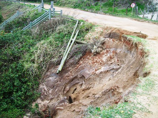 De acordo com o Sr. Beto, que acompanhou o protesto, a área das escadarias que dá acesso a praia esta caindo e a estrada esta desbarrancando nas duas laterais.